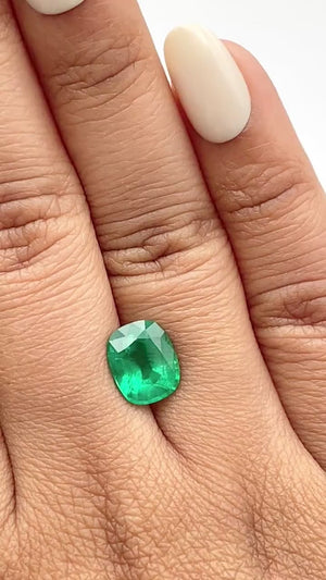 • Each of our gemstones are ethically sourced from superior rough and cut to exacting standards by our master gem cutters. This Emerald is 2.61ct in a cushion shape brilliant cut measuring 9.46 - 7.80 x 6.06 with a depth of 77.7%.