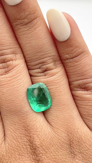 3.28ct | Brilliant Cut Cushion Shape Brazil Emerald