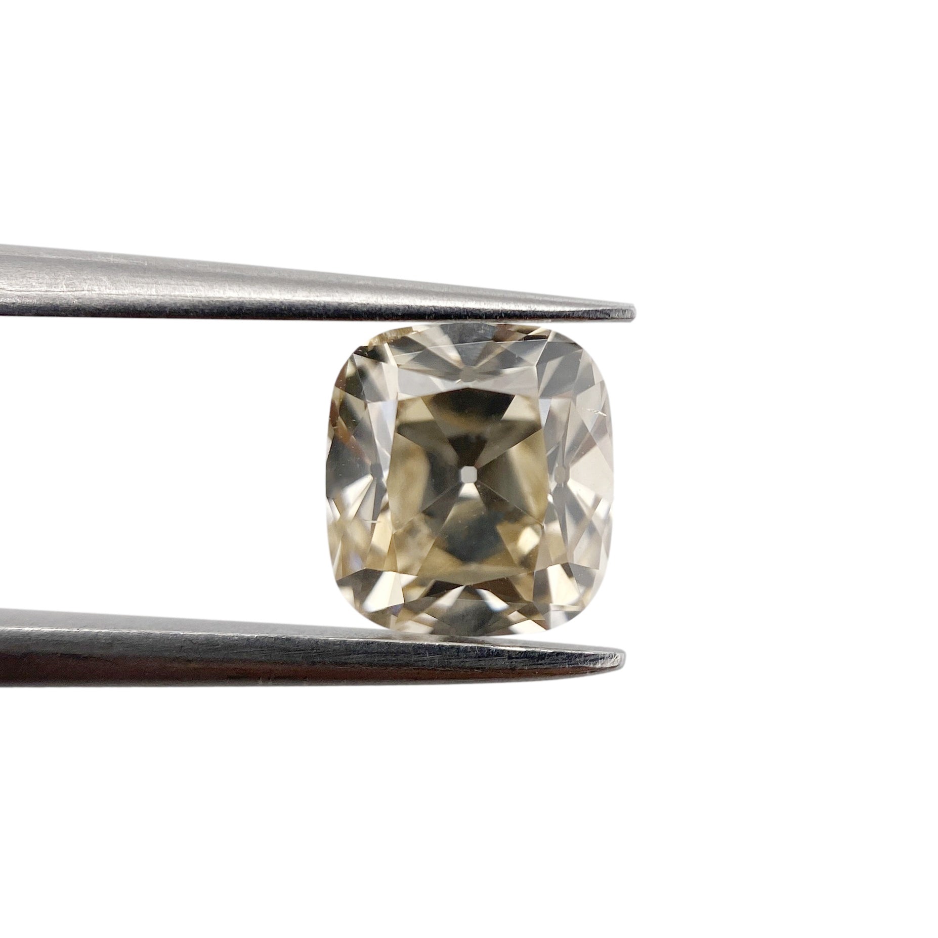 • Each of our diamonds are ethically sourced from superior rough and cut to exacting standards by our master gem cutters. This diamond is 1.62ct in a cushion shape old mine cut with a color of U-V and clarity of SI2. It is 7.11 - 6.50 x 4.53 with a depth of 69.7%.
