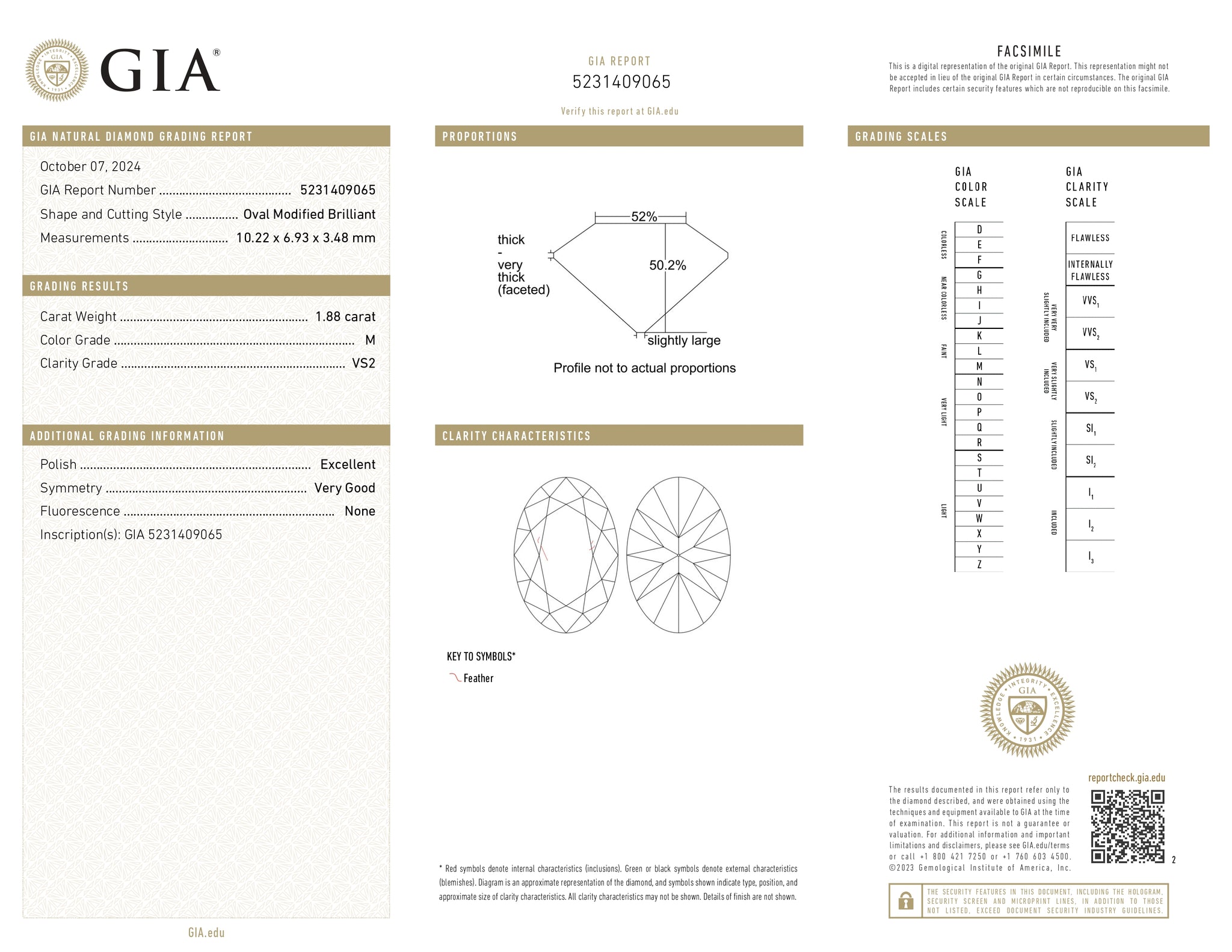 • Each of our diamonds are ethically sourced from superior rough and cut to exacting standards by our master gem cutters. This diamond is 1.88ct in an oval shape old mine cut with a color of M and clarity of VS2. It is 10.22 - 6.93 x 3.48 with a depth of 50.2%.