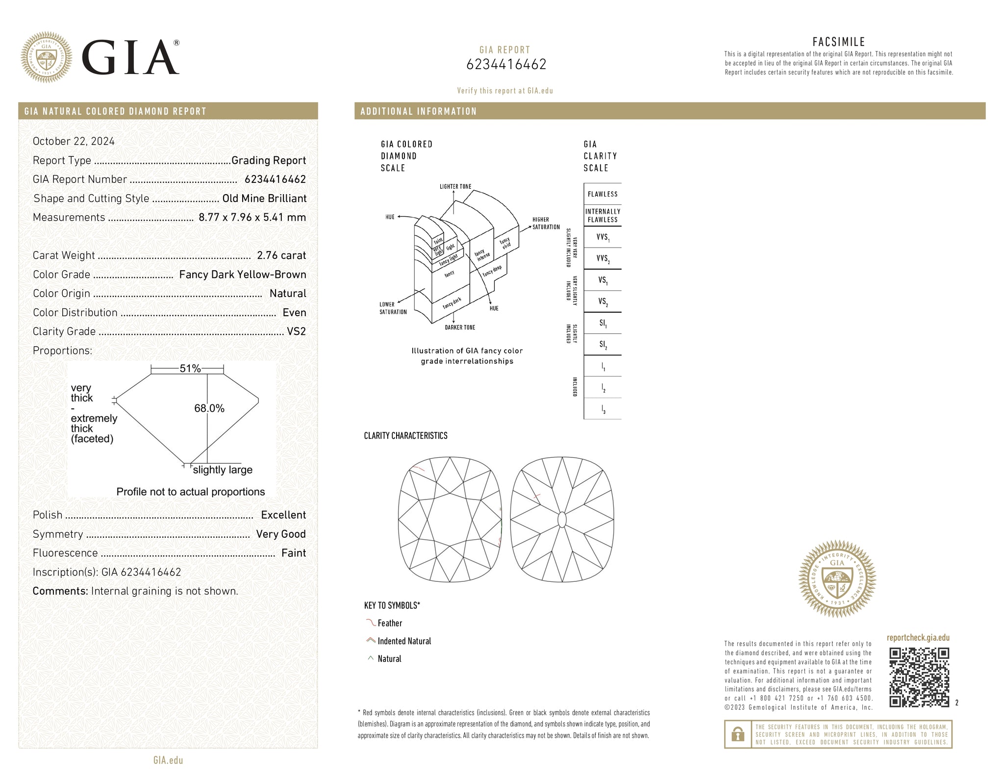 2.76ct | Cognac VS2 Cushion Shape Old Mine Cut Diamond (GIA)