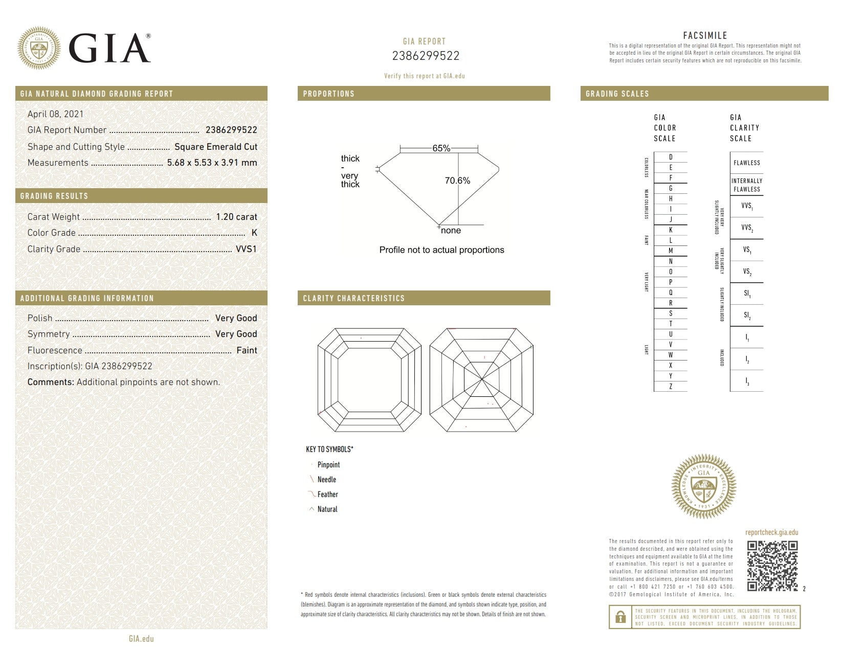 • Each of our diamonds are ethically sourced from superior rough and cut to exacting standards by our master gem cutters. This diamond is 1.20ct in an asscher shape step cut with a color of K and clarity of VVS1. It is 5.68 - 5.53 x 3.91 with a depth of 70.7%.