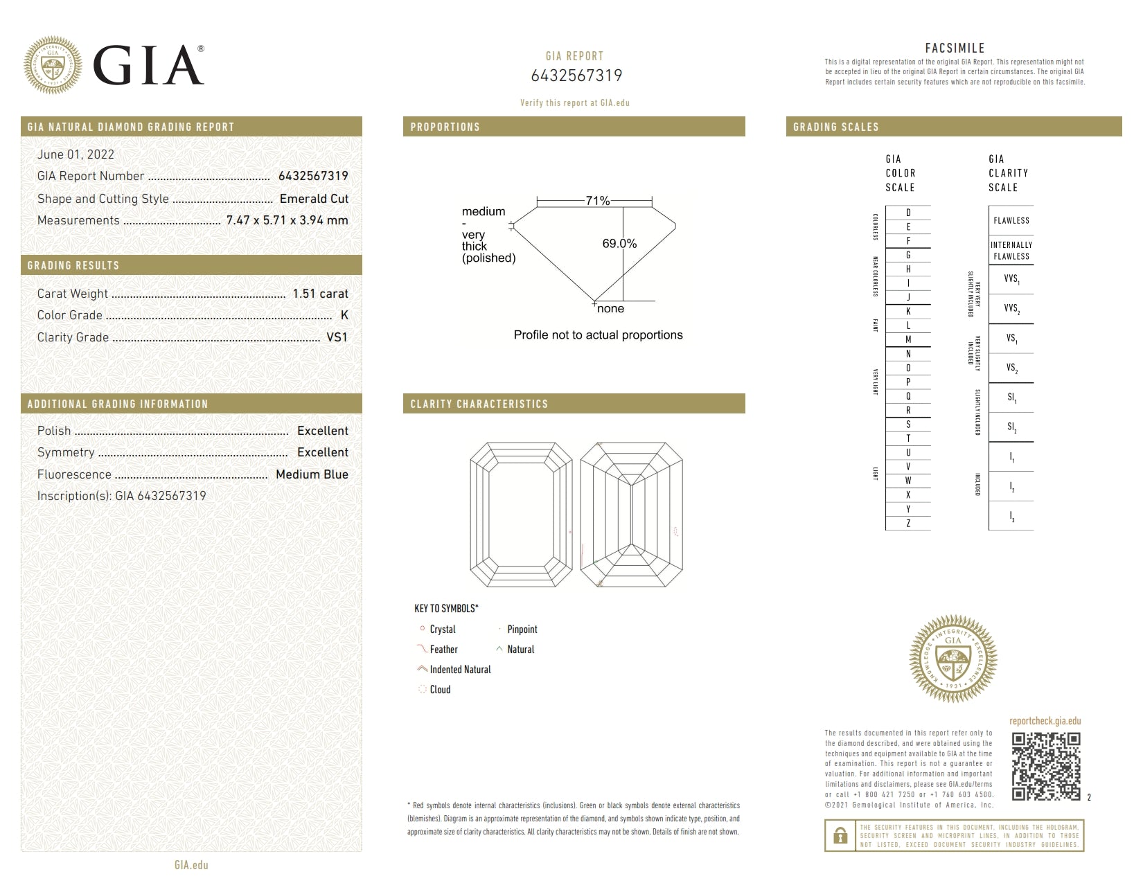 1.51ct | K/VS1 Emerald Shape Brilliant Cut Diamond (GIA)