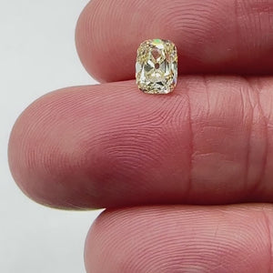 • Each of our diamonds are ethically sourced from superior rough and cut to exacting standards by our master gem cutters. This diamond is 1.14ct in a cushion shape old mine cut with a color of U-V and clarity of VVS2. It is 7.05 - 5.40 x 3.6 with a depth of 66.7%.