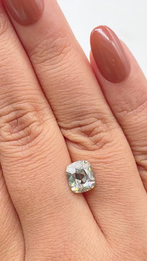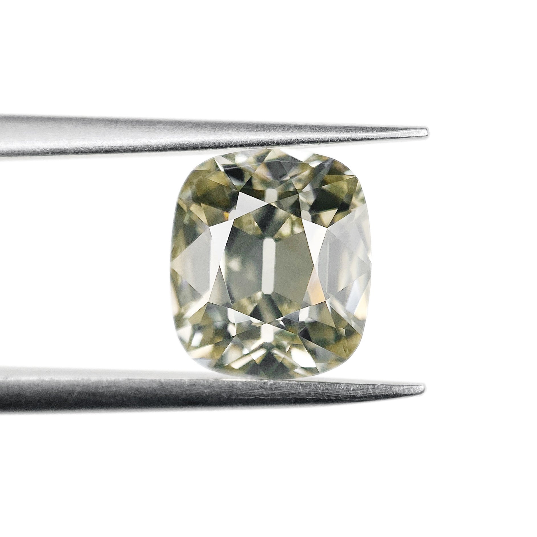 • Each of our diamonds are ethically sourced from superior rough and cut to exacting standards by our master gem cutters. This diamond is 2.07ct in a cushion shape old mine cut with a color of Fancy Dark Yellowish Green-Gray and clarity of SI1. It is 8.13 - 7.14 x 4.56 with a depth of 63.9%.