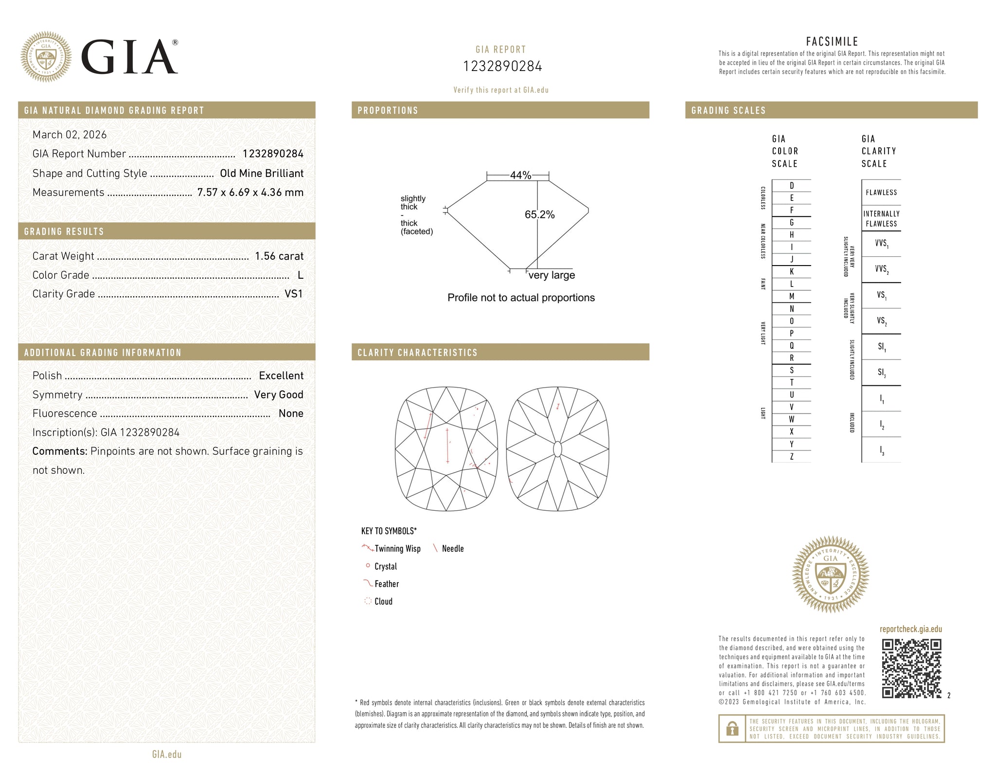 1.56ct | L/VS1 Cushion Shape Old Mine Cut Diamond (GIA)