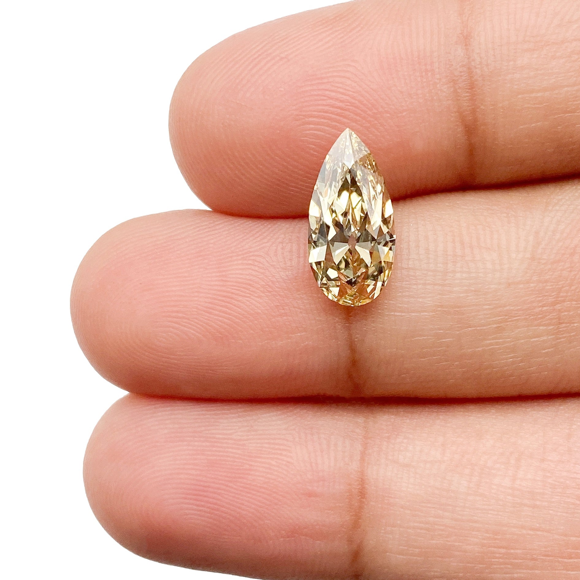 • Each of our diamonds are ethically sourced from superior rough and cut to exacting standards by our master gem cutters. This diamond is 1.58ct in a pear shape old mine cut cut with a color of Champagne and clarity of VS1. It is 11.99 - 5.92 x 3.50 with a depth of 59.1% and is certified by GIA. This diamond originates from Lesotho.