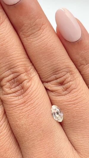 • Each of our diamonds are ethically sourced from superior rough and cut to exacting standards by our master gem cutters. This diamond is 0.61ct in an oval shape old mine cut with a color of I-J and clarity of VVS. It is 7.19 - 4.24 x 2.73 with a depth of 64.4%.