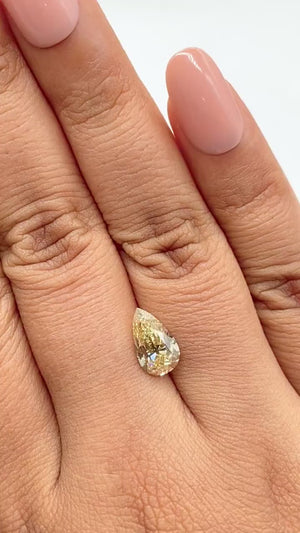 • Each of our diamonds are ethically sourced from superior rough and cut to exacting standards by our master gem cutters. This diamond is 2.00ct in a pear shape old mine cut with a color of Fancy Brownish Yellow and clarity of VS2. It is 10.87 - 6.37 x 4.44 with a depth of 69.7%.