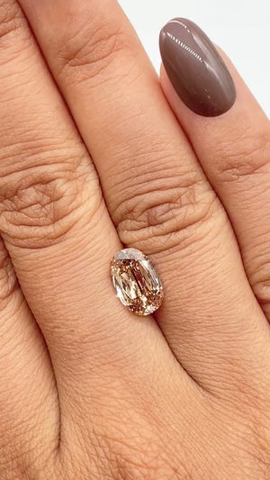 • Each of our diamonds are ethically sourced from superior rough and cut to exacting standards by our master gem cutters. This diamond is 2.07ct in an oval shape old mine cut with a color of Fancy Brown and clarity of VS2. It is 9.91 - 6.55 x 3.69 with a depth of 56.3%.