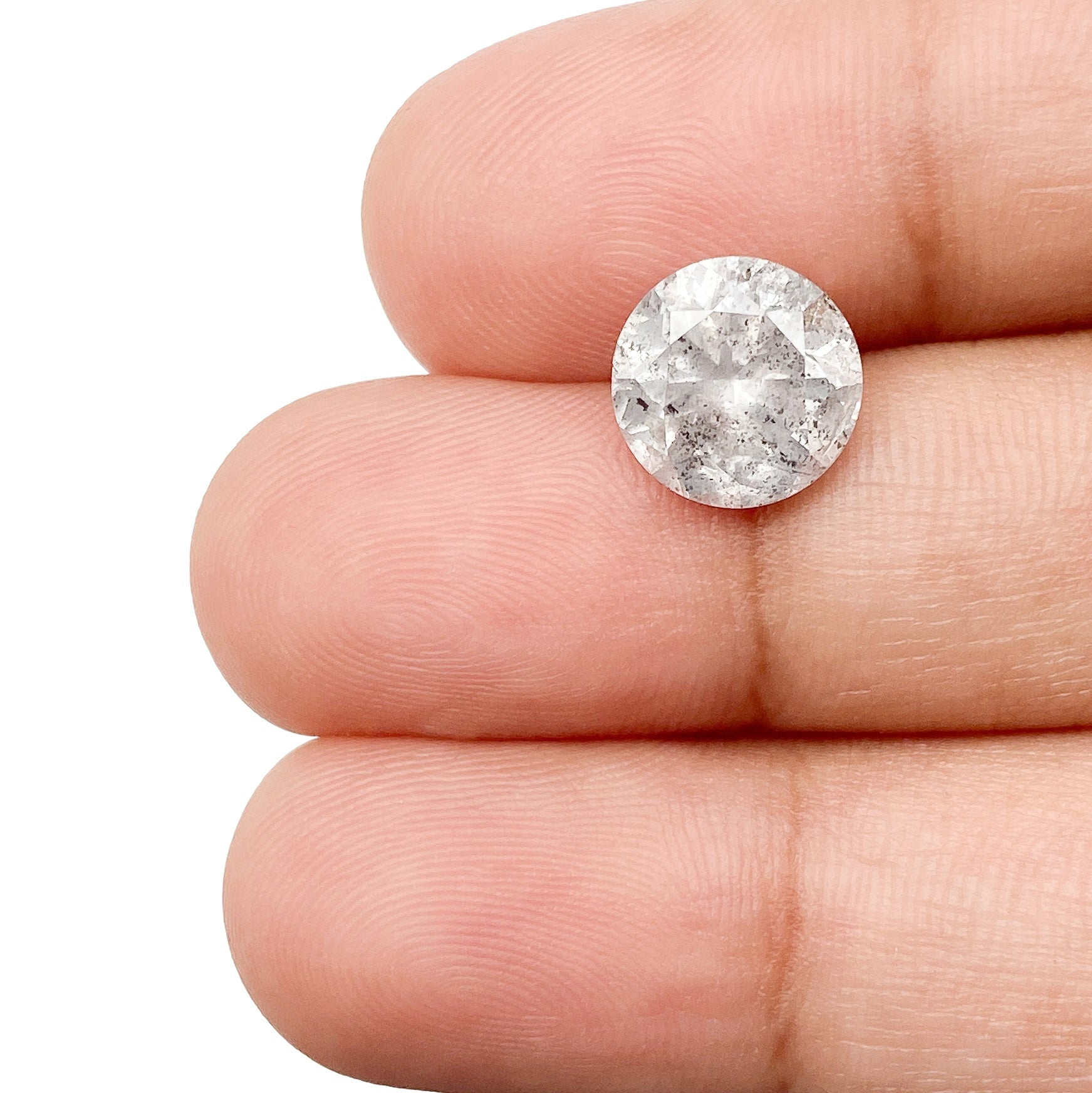2.98ct | Salt & Pepper Round Shape Brilliant Cut Diamond