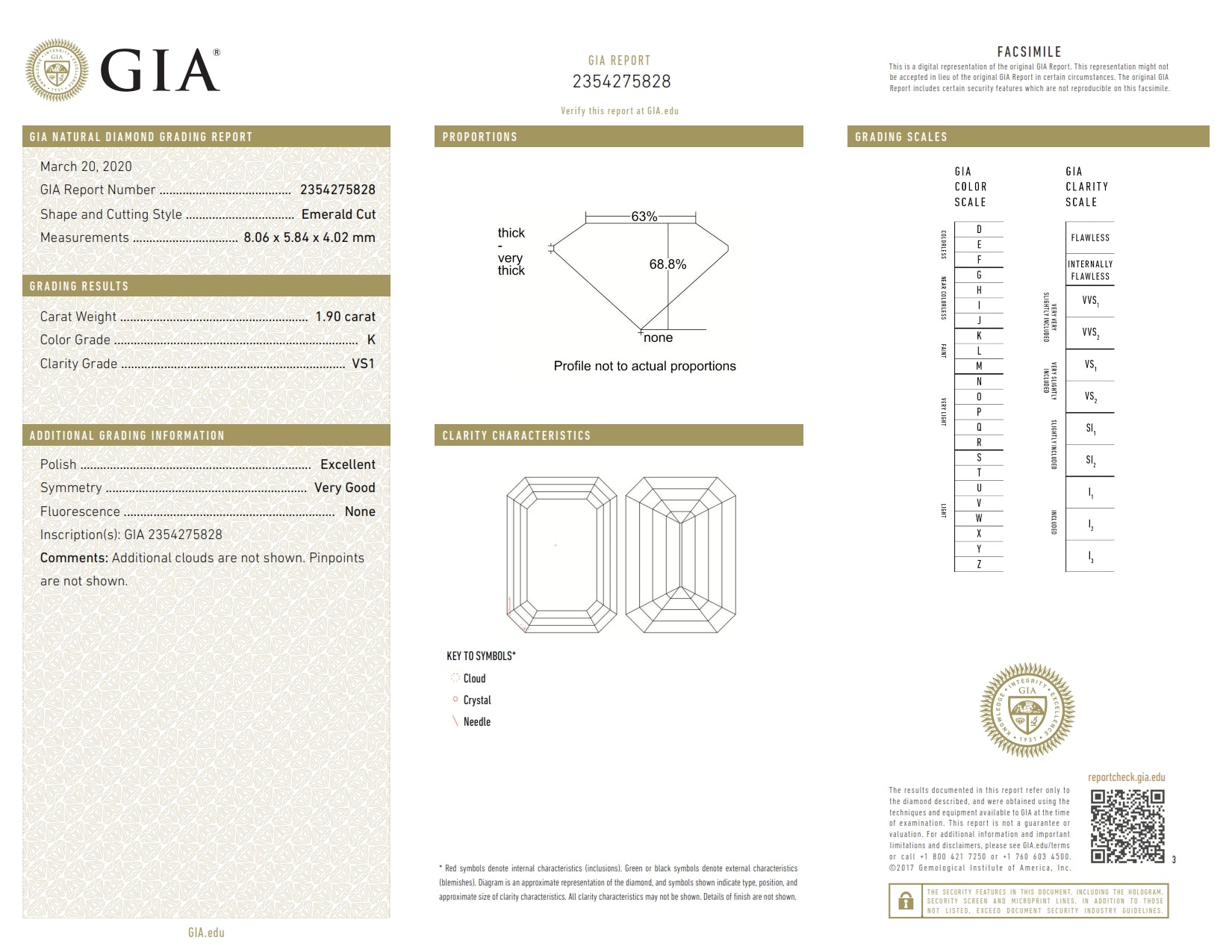 1.90ct | K/VS1 Emerald Shape Brilliant Cut Diamond (GIA)