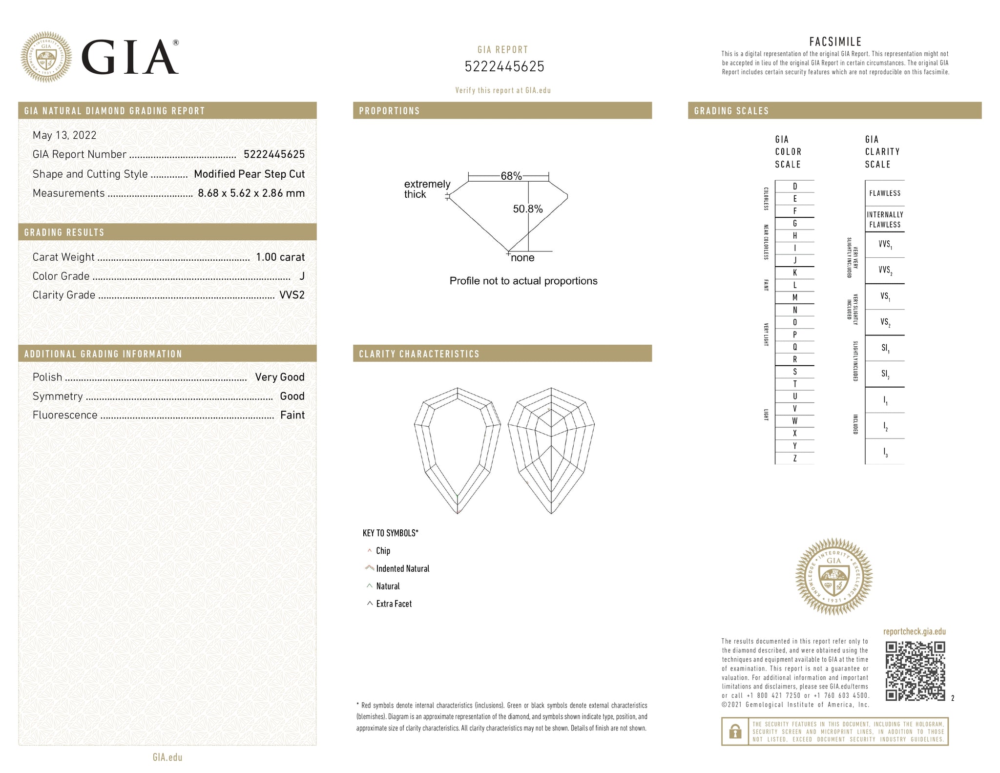 • Each of our diamonds are ethically sourced from superior rough and cut to exacting standards by our master gem cutters. This diamond is 1.00ct in a pear shape step cut with a color of J and clarity of VVS2. It is 8.68 - 5.62 x 2.86 with a depth of 50.9%.