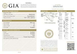 • Each of our diamonds are ethically sourced from superior rough and cut to exacting standards by our master gem cutters. This diamond is 0.80ct in a round shape brilliant cut with a color of M and clarity of SI2. It is 5.92 - 5.95 x 3.68 with a depth of 62%.