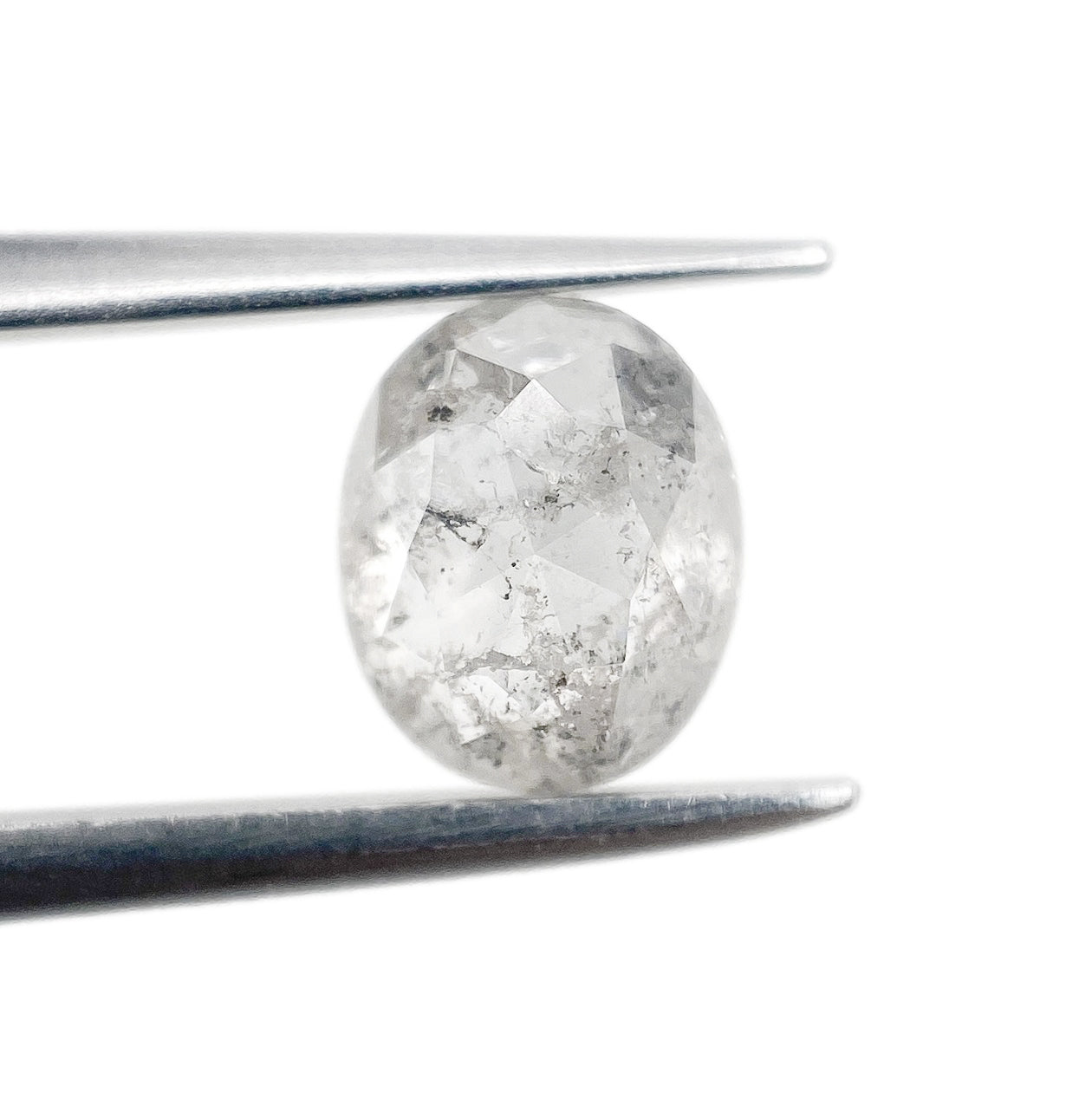 • Each of our diamonds are ethically sourced from superior rough and cut to exacting standards by our master gem cutters. This diamond is 1.10ct in an oval shape rose cut with a color of Salt & Pepper. It is 6.77 - 5.49 x 3.19 with a depth of 58.1%.
