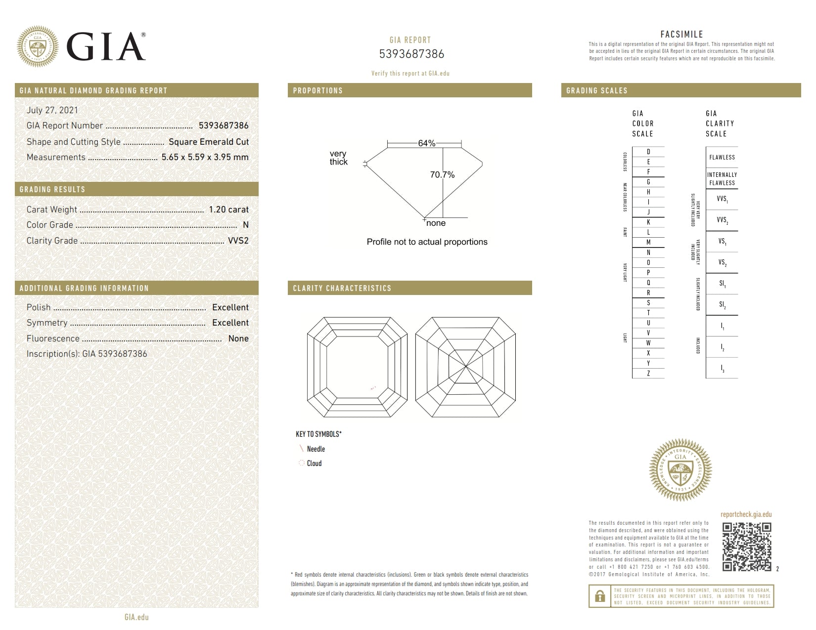 • Each of our diamonds are ethically sourced from superior rough and cut to exacting standards by our master gem cutters. This diamond is 1.20ct in an asscher shape step cut with a color of N and clarity of VVS2. It is 5.65 - 5.59 x 3.95 with a depth of 70.7%.
