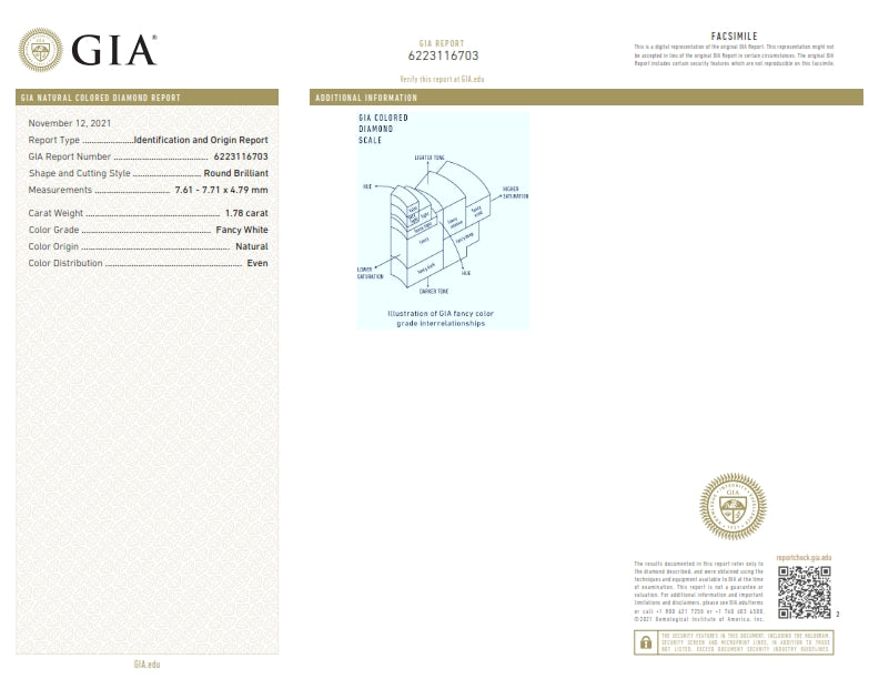 • Each of our diamonds are ethically sourced from superior rough and cut to exacting standards by our master gem cutters. This diamond is 1.78ct in a round shape brilliant cut with a color of Salt & Pepper. It is 7.61 - 7.71 x 4.79 with a depth of 62.5%.