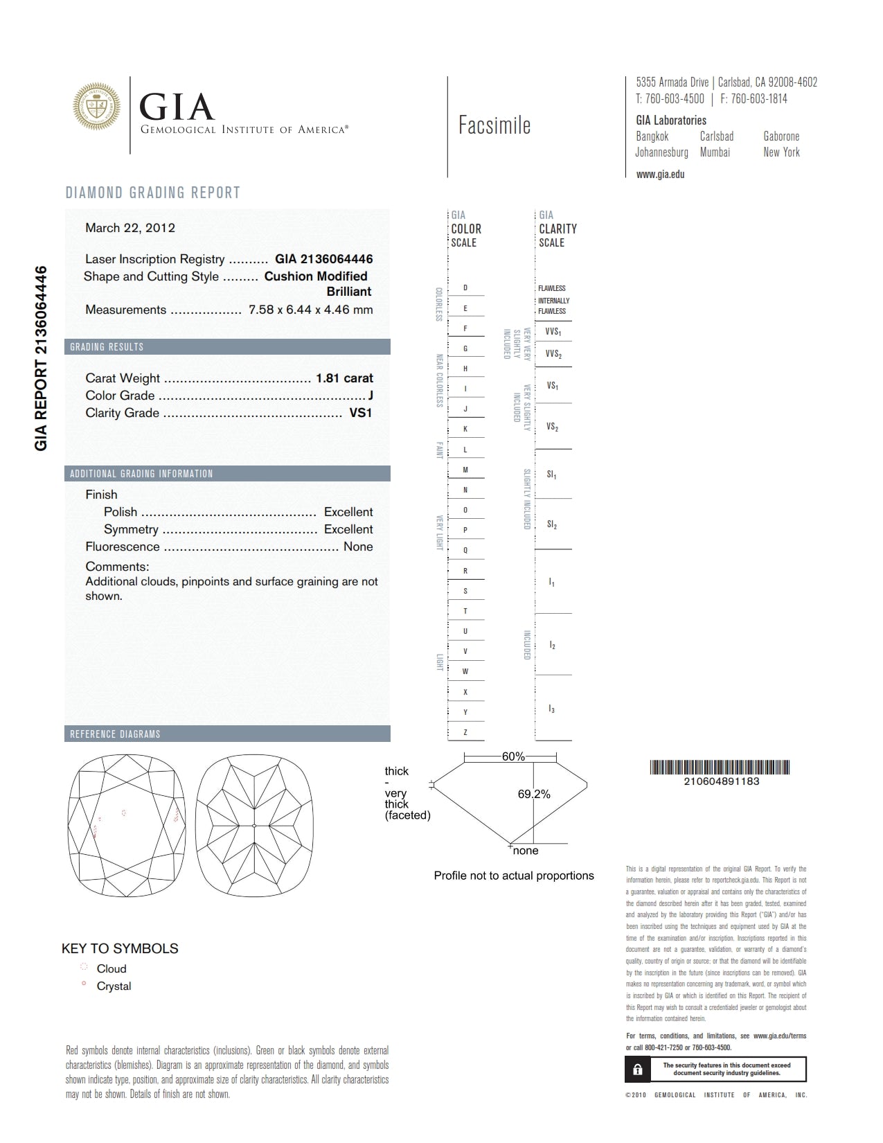 1.81ct | J/VS1 Cushion Shape Brilliant Cut Diamond (GIA)