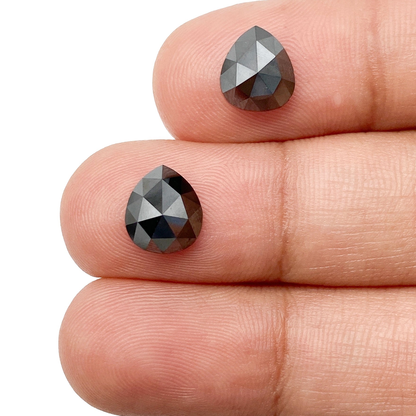2.74cttw | Black Pear Shape Rose Cut Diamond Matched Pair