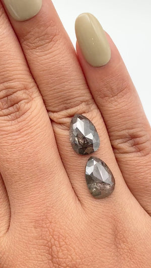6.07cttw | Salt & Pepper Pear Shape Rose Cut Diamond Matched Pair